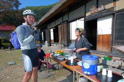 古寺の境内を通ったり、村内の集落を回り多くの観客の応援と、村民のみなさんが軒先で「プライベートフィードゾーンのおもてなし」が行われます。