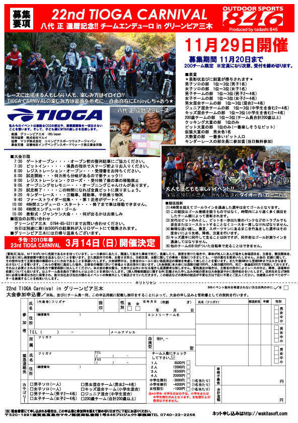 22nd TIOGA CANIVALは11月29日に開催します。