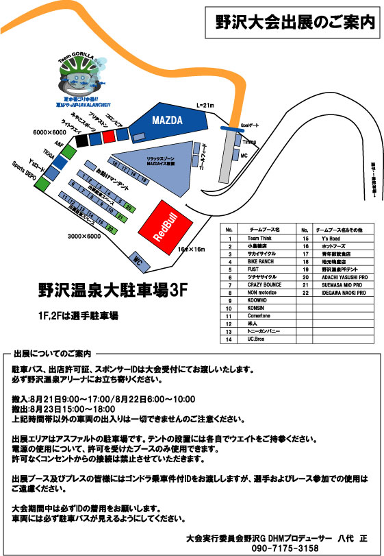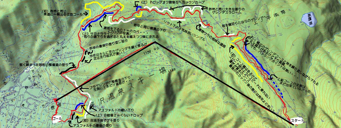 くれぐれもスピードを抑えめにコース以外は走らないように、そして下の野沢試走の注意事項(2)と参加受理書の「試走での注意事項」を守ってくださいね。